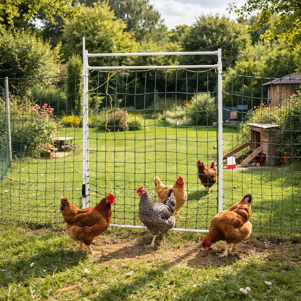 Facilitez vos allées et venues dans l’enclos de vos poules grâce à cette porte spécialement conçue pour les filets électrifiables.